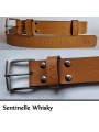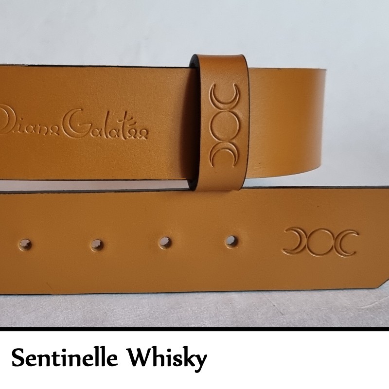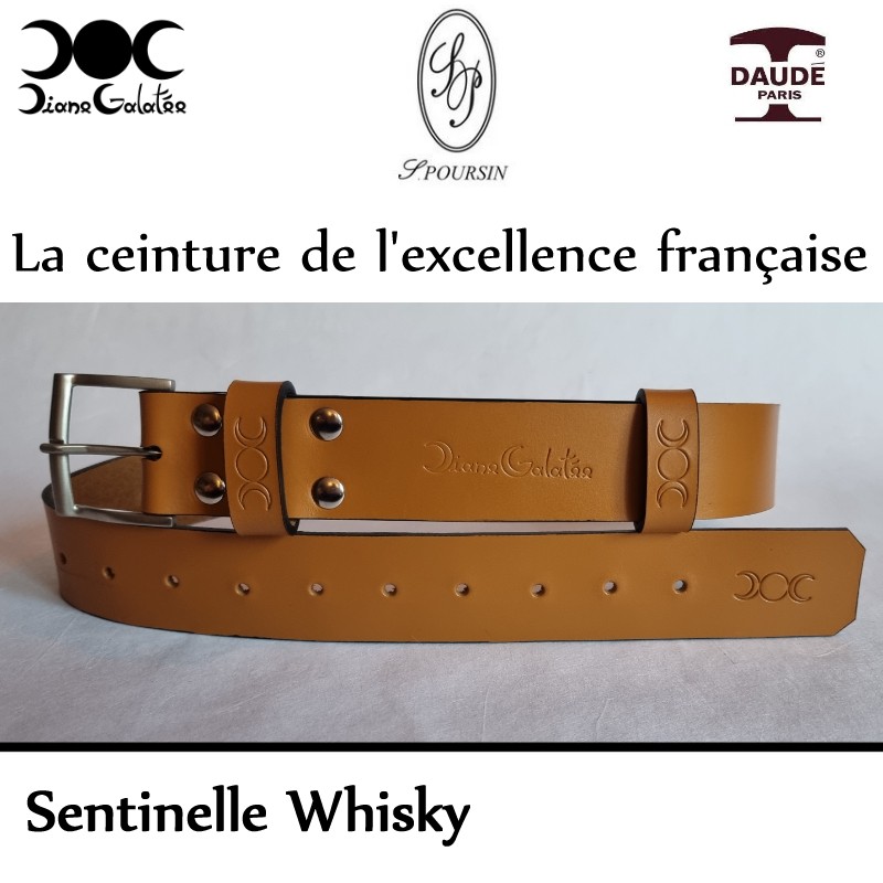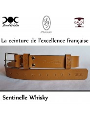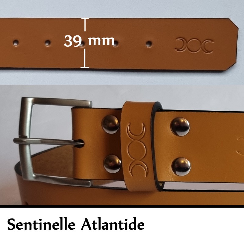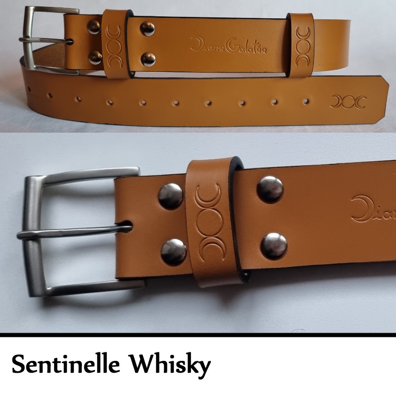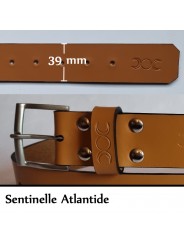 La Sentinelle est une ceinture en référence à tous les corps d'armée. D'une largeur de 39 mm, elle est impérativement livrée avec un kit sentinelle (passant spécifique et porte clef associé). La boucle de chaque ceinture a été fabriquée à la main dans les Ateliers Poursin, à Paris. Elle est en Laiton Poli Nickelée Brossée. Les 4 rivets qui cernent le passant fixe et la boucle, on été fabriqués par les établissement Daudé, à Paris. Le cuir provient de 2 tanneries Françaises. L'une à Paris, l'autre en Normandie. Son tannage est végétal afin de préserver au maximum notre environnement.