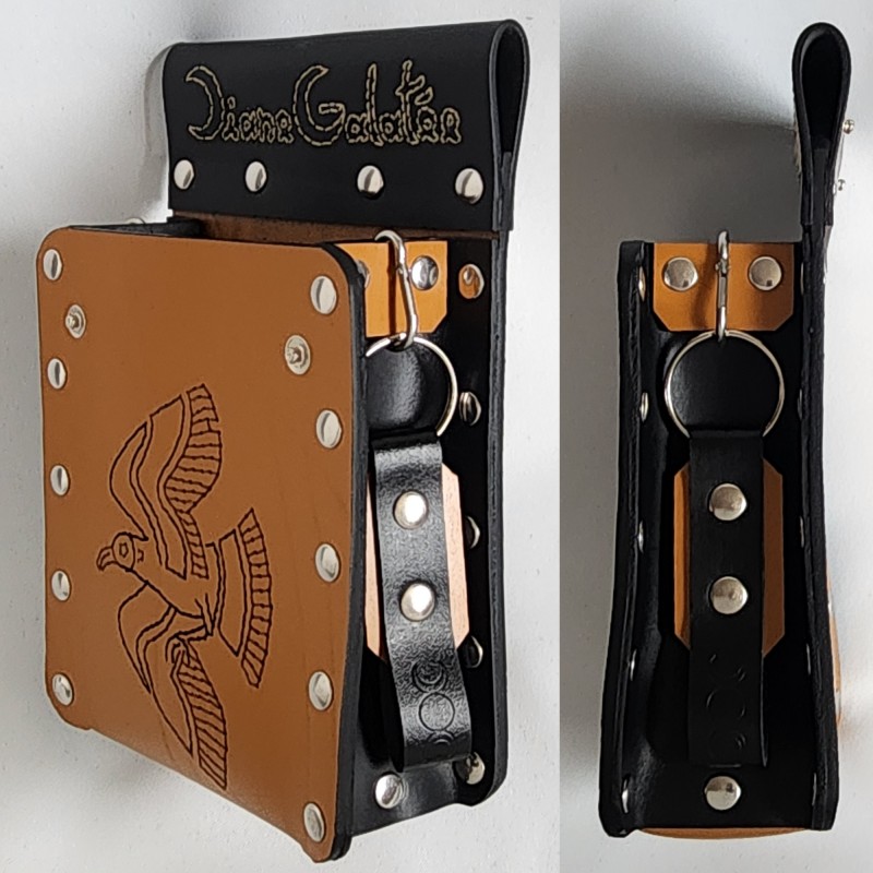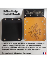 The embroidery required 14 m of thread, available in 4 colors, and took 6 hours of work. Embroidering leather with a thickness of 3mm can only be done by hand and requires patience and precision. The two leathers, with substantial thicknesses (2 and 3mm), which make up the bag come from our French tanneries. These are leathers obtained by vegetable tanning, environmentally friendly and durable.